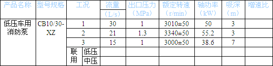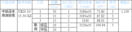 CB20.10/15.30-XZ 中低壓車(chē)用消防泵工況性能參數表 | |||