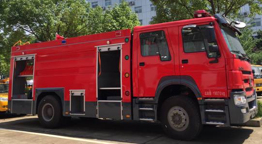 JDF5204GXFPM80型泡沫消防車(chē)、JDF5204GXFSG80型水罐消防車(chē),采用重汽豪沃ZZ5207N4617E1底盤(pán)改裝而成。整車(chē)由消防員乘員室和車(chē)身兩大部分組成,乘員室為單排改雙排,可乘坐2+4人,該車(chē)為外露罐結構,車(chē)身前部為器材箱,中部為水罐,后部為泵房。載液罐體為優(yōu)質(zhì)碳鋼,內部噴涂環(huán)氧底漆及環(huán)氧瀝青漆,與底盤(pán)采用彈性連接,載水5800kg(PM80)/7700kg(SG80),泡沫液量1900kg(PM80),裝備了上海雄真消防設備有限公司生產(chǎn)CB20.10/30.60型中低壓消防泵,額定流量60L/S,車(chē)頂安裝成都威斯特消防機械有限公司生產(chǎn)的PL48(PM80)或PS60W(SG80)型車(chē)用消防炮。該車(chē)最大的特點(diǎn)是載液量大、操控性好、維修簡(jiǎn)便??蓮V泛應用于公安消防隊、廠(chǎng)礦企業(yè)及社區、碼頭等場(chǎng)所,撲救大型油類(lèi)火災和一般物質(zhì)火災。