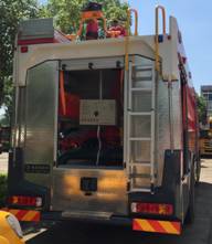 車(chē)身兩側安裝紅、藍兩色頻閃燈,上裝后部安裝35W消防探照燈1個(gè)火場(chǎng)照明 |