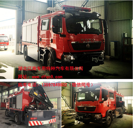 重汽T5G搶險救援消防車(chē)專(zhuān)用配置說(shuō)明:(前拖、后吊、升降照明+多功能器材廂)